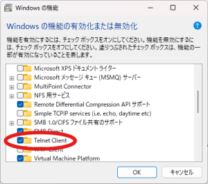 Windows11 では標準で telnet は使えないが、簡単な操作で telnet クライアントをインストールできる。