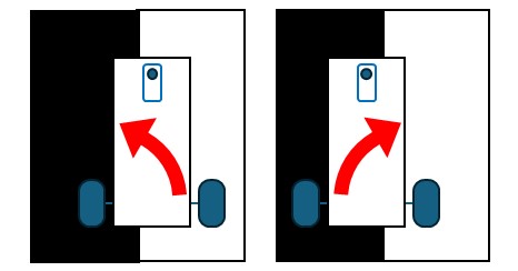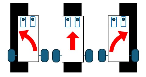 このような車体であれば、黒白なら左折、黒黒なら直進、白黒なら右折するように制御すればいい。
